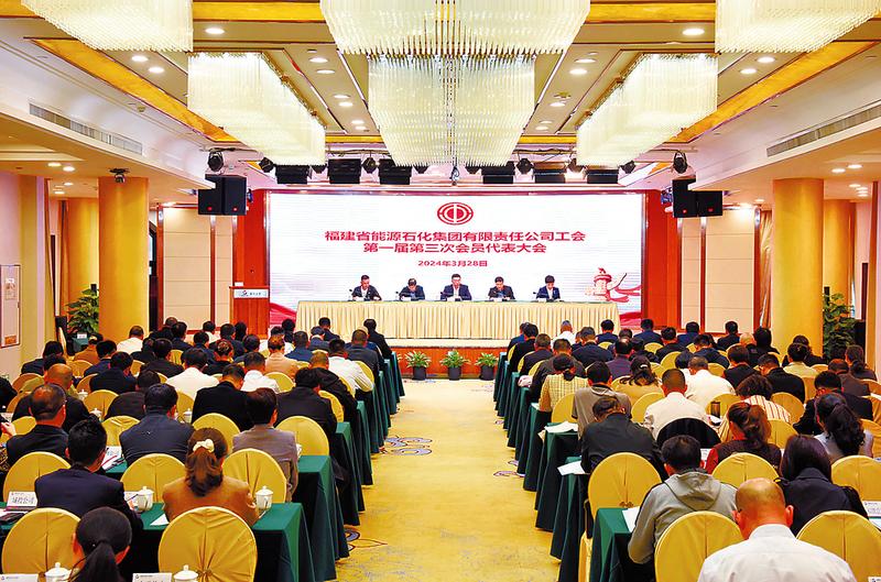 本報訊 3月28日,福建能源石化集團公司工會第一屆會員代表大會第三次全體會議在福州召開,集團公司黨委副書記、工會主席吳宏與集團各單位工會代表、列席人員、工作人員130余人出席會議。