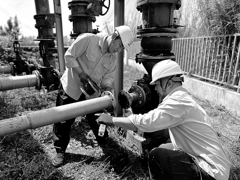 為切實做好汛期安全管理工作,保障機電設備的安全穩定運行,福建城投水務投發公司加強對機電設備的日常檢修工作。圖為3月26日,該公司機電設備部正在對排污泵管路進行改造。(鄭靜 攝)