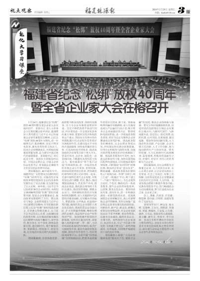 福建省紀念“松綁”放權40周年暨全省企業家大會在榕召開
