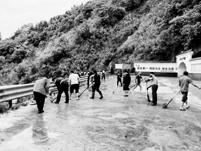 石礦區突降暴雨,現場道路多處滑坡,選礦區遭雨水沖刷。浦城礦業組織黨員突擊隊及時清理道路滑坡、水溝,抽排選礦區降水,確保礦山安全。(劉德釗 攝)