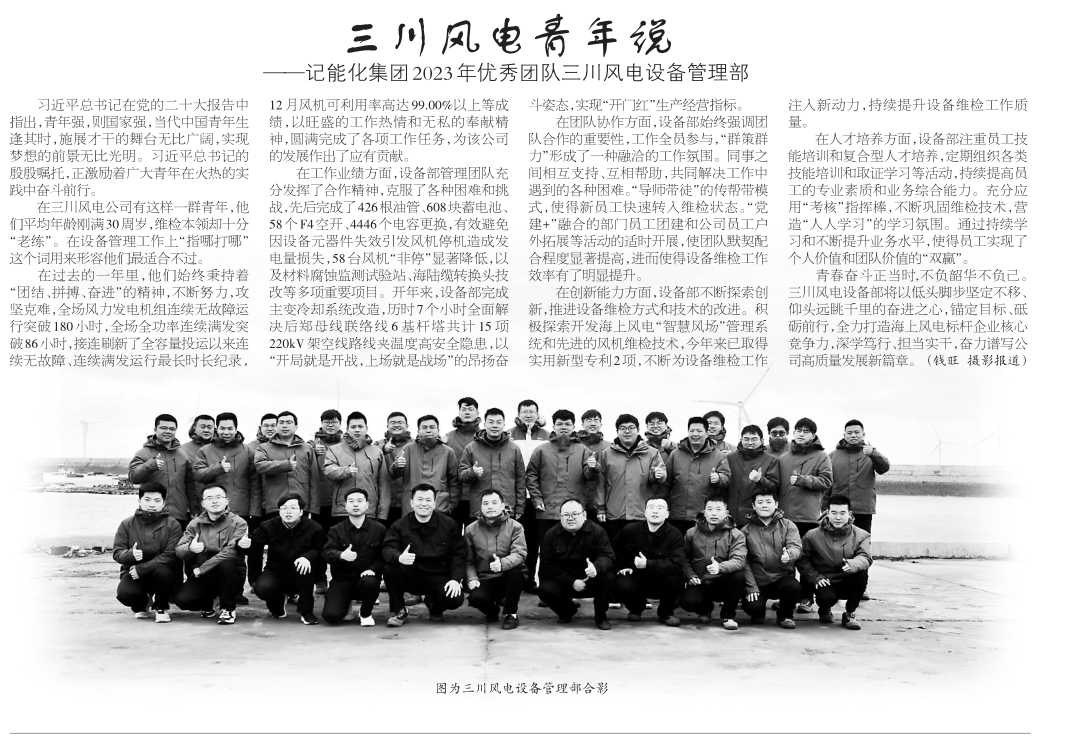 三川風電青年說——記能化集團2023年優秀團隊三川風電設備管理部