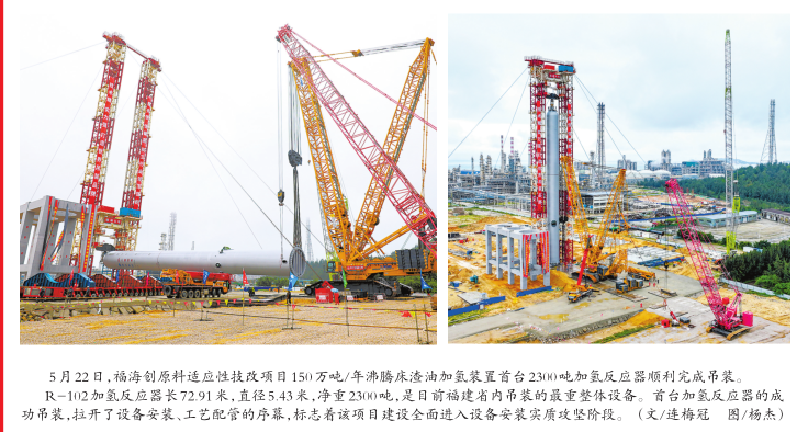福海創沸騰床渣油加氫裝置首臺2300噸加氫反應器順利完成吊裝