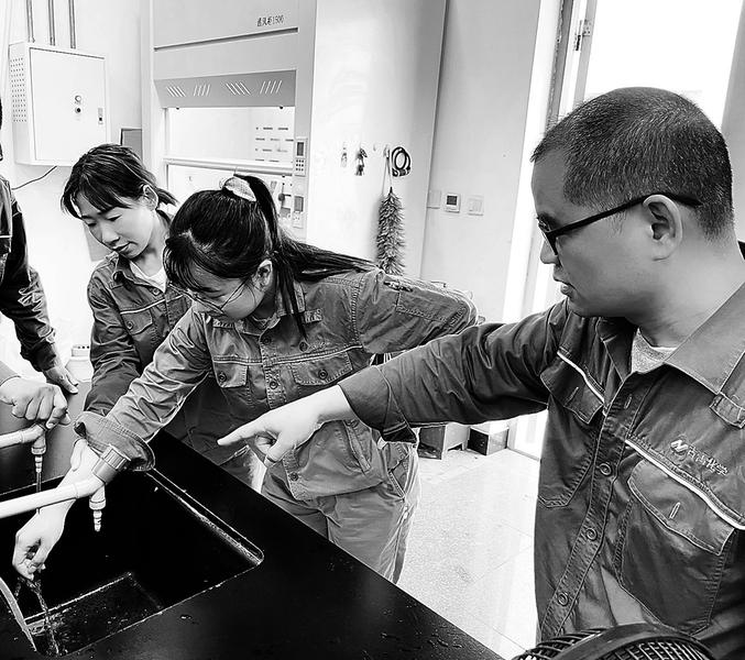 6月3日,古蕾化學公司化驗檢測團隊開展“安全生產月”實驗室硫酸傷害應急演練活動,演練模擬員工被飛濺的硫酸灼傷的應急處置流程。圖為演練現場。(裴俊慧攝)