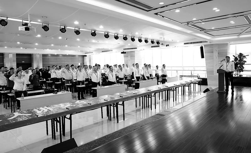 6月3日,鴻山熱電公司舉行“安全生產月”啟動儀式。圖為全體人員共同宣讀安全誓詞,莊嚴做出安全承諾。(劉寒婷 莫教楠攝)