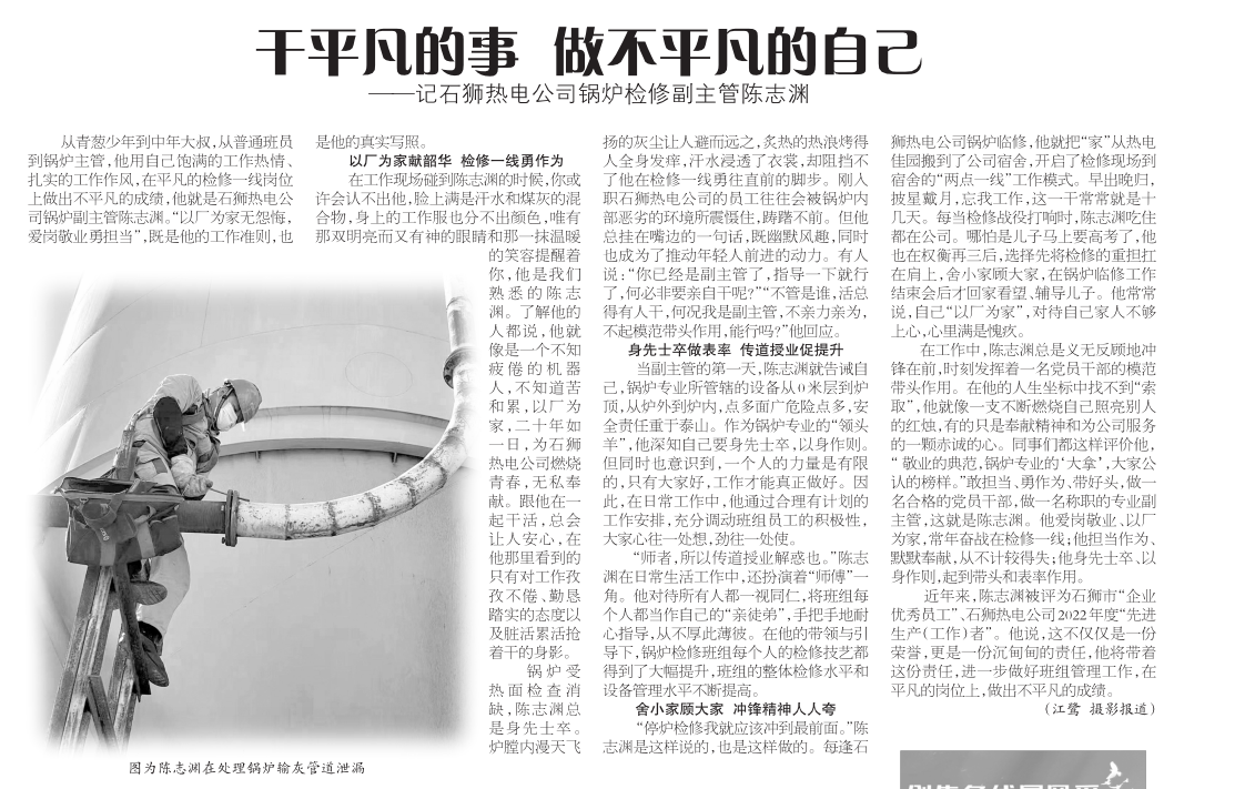 干平凡的事 做不平凡的自己——記石獅熱電公司鍋爐檢修副主管陳志淵