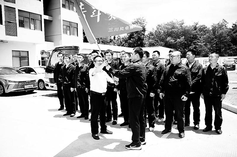 6月24日,三川風電公司在石城升壓站召開設備年檢工作動員會,該公司領導分別為黨員先鋒隊和青年突擊隊授旗。鼓勵隊員們發揮先鋒模范作用,勇于承擔“急、難、險、重”任務,關鍵時刻沖在前、干在前,確保年度檢修任務圓滿完成。(鄭啟團攝)