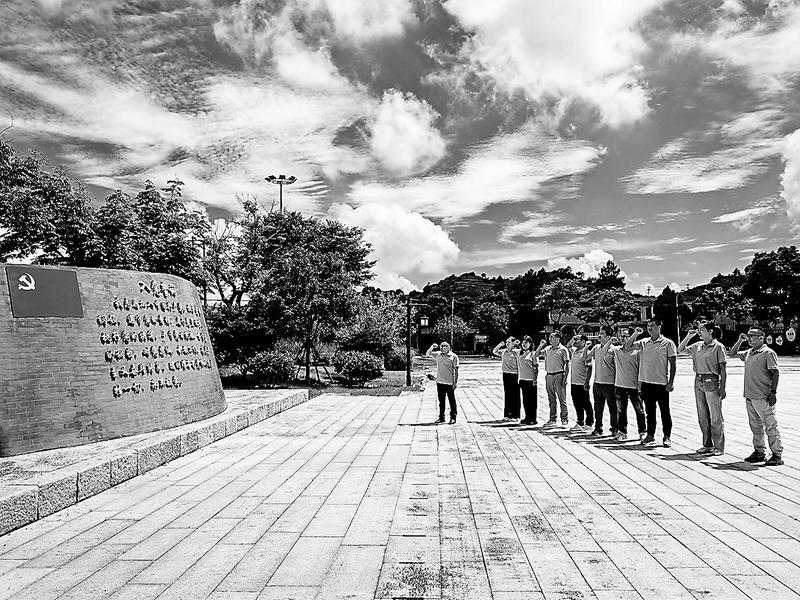 66月月2020日日,,建材控股廈門公司黨支部與福清公司黨支部開展共建活動,,組織黨員和入黨積極分子走進廈門市同安區蓮花鎮軍營村,,開展迎七一開展迎七一““學黨紀學黨紀、守初心、、擔使命擔使命、、建新功建新功””主題黨日活動主題黨日活動。。圖為黨員在“高山黨校初心使命館高山黨校初心使命館””重溫入黨誓詞重溫入黨誓詞。。(梁瑞和攝)