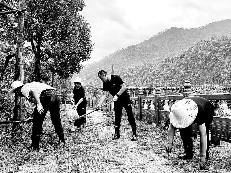 6月18日,洪峰過境導致南平市曬口街道云屏社區溪邊棧道被淹沒、學校等地勢低洼地帶進水。6月19日上午,洪水退去后,邵武煤業公司迅速組織黨員志愿者協助社區共同開展退水區域環境恢復治理工作。(趙芯攝)