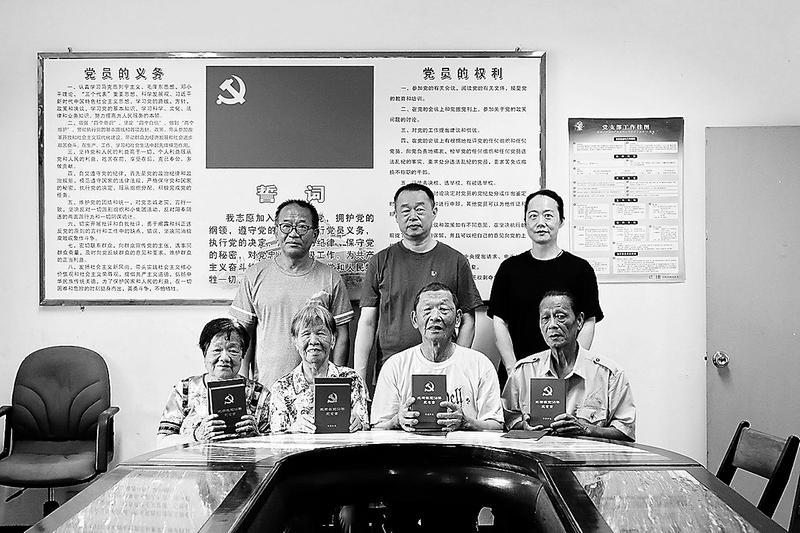 6月27日,福建水泥永安建福公司黨委為符合條件的5位老黨員頒發了“光榮在黨50年”紀念章,并送上黨紀學習書籍。(劉毅攝)