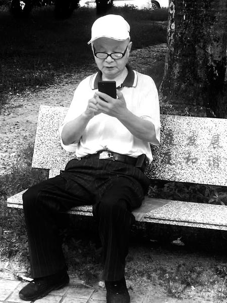 圖為葉翔在公園里用手機撰寫回憶錄圖為葉翔在公園里用手機撰寫回憶錄 洋洋灑灑23萬字,他以墨為鋒,用至誠之心訴說一代水泥匠人的初心和信仰;風雨兼程20年,他敢于亮劍,以實干之舉踐行一名共產黨員的使命和擔當。他就是原福建煉石水泥有限公司供應部主任葉翔。