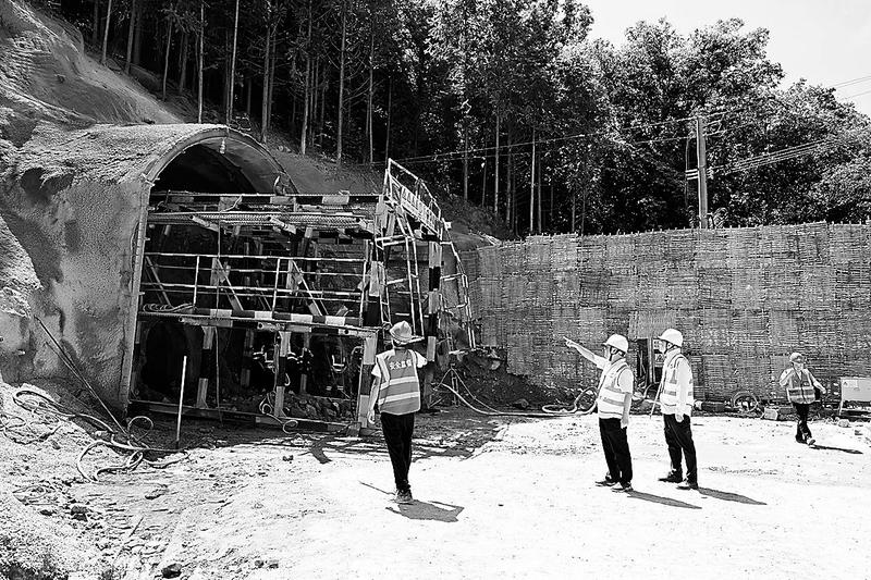 福建華安抽蓄項目為“十四五”規(guī)劃的重點實施項目,花山抽蓄公司抓好項目前期工程施工組織,提前規(guī)劃在長探洞設計一條與通風兼安全洞相連接的施工支洞,該施工支洞擴挖至6.5m×6.0m后預計可縮短通風兼安全洞施工工期。圖為7月23日,在長探洞洞口明拱段,三榀鋼拱架已完成立架并做噴混支護。(連益峰 攝)
