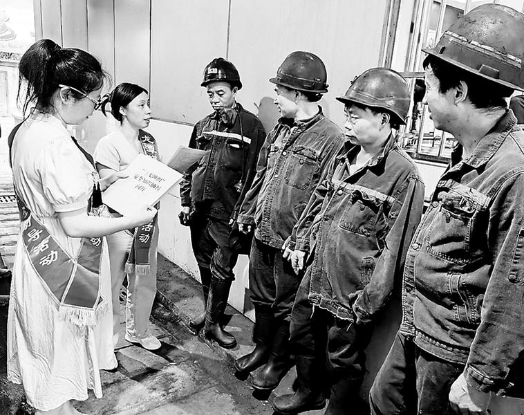 近日,福建煤電公司龍?zhí)睹旱V在井口開展“三無班組”安全知識抽問答,職工們在答題中增強(qiáng)了安全意識,規(guī)范了操作習(xí)慣。(林莉攝)