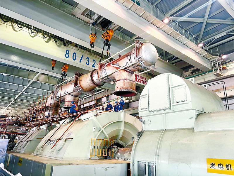 8月24日中午12點(diǎn),福能貴電#1機(jī)中低壓連通管緩緩升起,標(biāo)志著該公司汽輪機(jī)本體檢修戰(zhàn)役正式打響。(冉川洲彭剛攝)