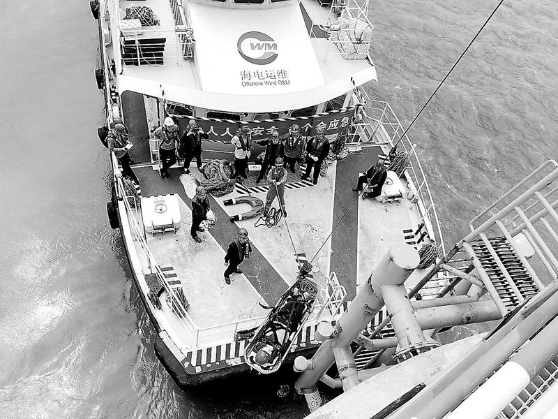 8月22日,三川風(fēng)電公司后鄭風(fēng)電場石城場區(qū)#57風(fēng)機(jī)附近人頭攢動(dòng)、船舶馬達(dá)聲轟鳴……該公司海上突發(fā)事件綜合應(yīng)急演練正在緊張進(jìn)行。演練根據(jù)公司海上風(fēng)機(jī)檢維修作業(yè)過程可能發(fā)生的事故類型,共設(shè)置海上風(fēng)電場作業(yè)人員落水救援和風(fēng)機(jī)上人身傷害事故傷員轉(zhuǎn)移救治兩個(gè)演練場景。(林晉洪黃貴泉攝)