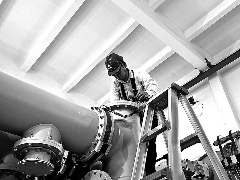 (文/羅天圖/陳珩立)圖為檢修人員正在對GISGIS設(shè)備進(jìn)行外觀檢查