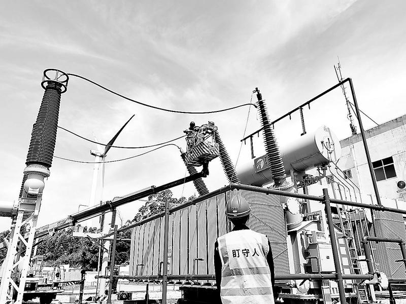 9月4日,福能新能源公司小岞風電場升壓站經(jīng)過4晝夜的連續(xù)奮戰(zhàn),順利完成全場電氣設(shè)備年度檢修預試工作,標志著該公司提前20余天完成13個升壓站年檢任務,為434臺風機以“滿血”狀態(tài)迎接盛風季的到來打下堅實的基礎(chǔ)。圖為漳州隆教風電場檢修人員對變壓器接線進行維護。(張英武林劍輝攝)