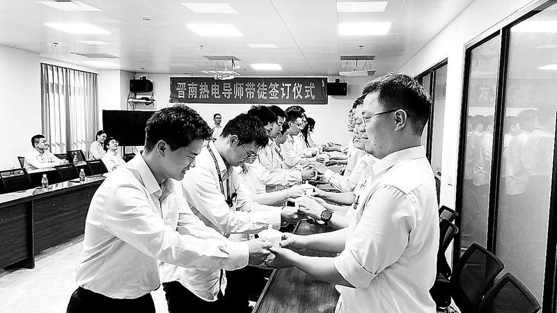 為充分發(fā)揮技術(shù)骨干人才的“傳、幫、帶”作用,加強對新員工及轉(zhuǎn)崗員工的技能、技術(shù)培養(yǎng),9月5日,晉南熱電公司舉行了“導(dǎo)師帶徒”簽訂儀式。(熊文秋攝)