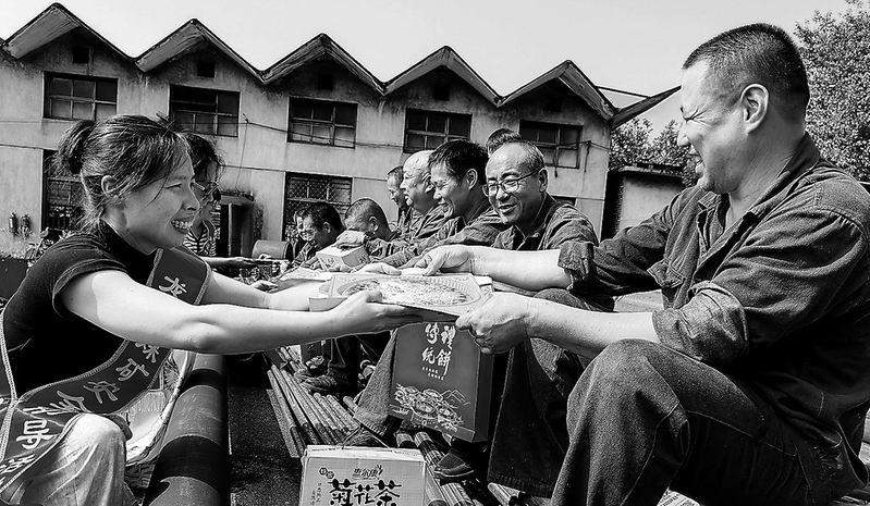 中秋之際,福建煤電公司龍潭煤礦志愿者們手提精美月餅,穿梭在礦區的各個崗位上,為職工們送去節日祝福。 (林莉 攝)