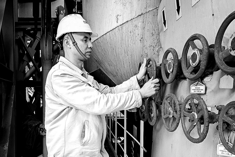 星光不問趕路人,韶華不負追夢者。陳樹山用他的努力詮釋了一名石獅熱電運行人員應該有的工作態度,給運行人員作出了表率。 (蘭良仁 攝影報道)圖為陳樹山在做點火前閥門開關試驗工作