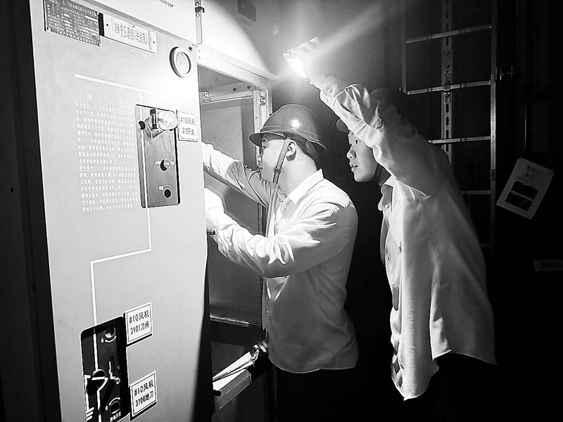 9月9日,福能新能源頂巖山風電場B組集電單元突發(fā)故障,檢修人員第一時間趕赴現(xiàn)場對故障設備進行排查,晝夜搶修保供電。圖為檢修員連夜搶修頂巖山風電場#10風機環(huán)網(wǎng)柜。 (林劍輝 林偉雄 攝)