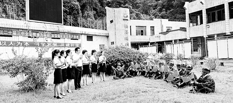 9月26日,福建煤電公司龍?zhí)睹旱V快板隊隊員在井口工業(yè)廣場和煤臺車間,用朗朗上口的快板詞、慷慨激昂的說唱,慶祝中華人民共和國成立75周年華誕。 (孫玉秀 攝)