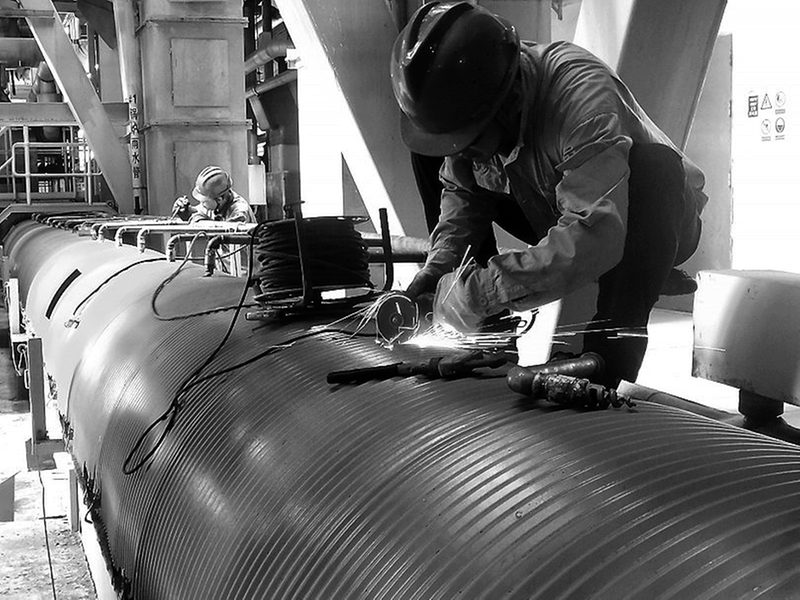 國慶期間,晉南熱電公司檢修人員利用生產運行間隙,見縫插針更換、加固鍋爐輸渣皮帶護罩。