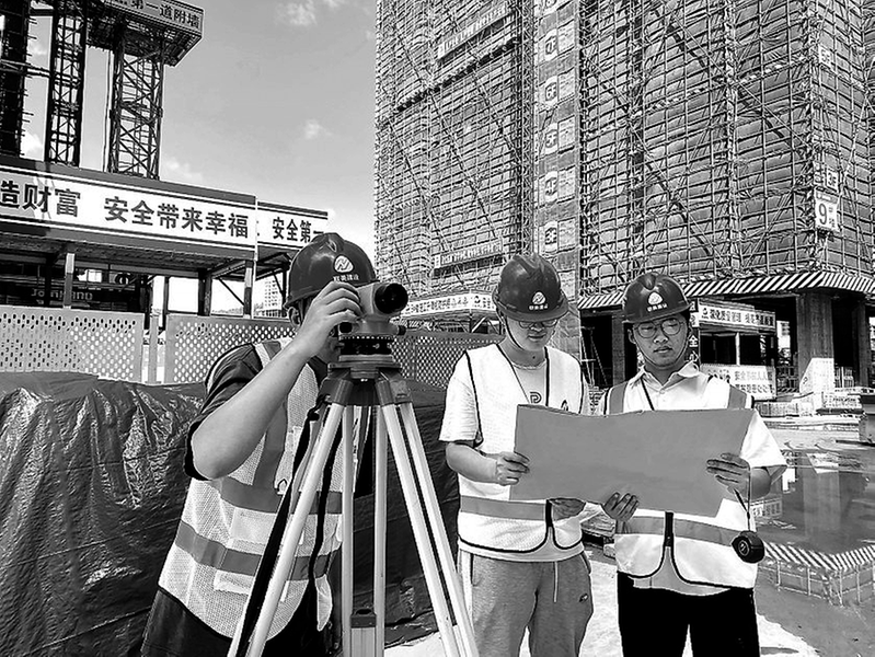 國(guó)慶期間,聯(lián)美公司德化許厝第三工程項(xiàng)目部建設(shè)者們堅(jiān)守崗位,開(kāi)足馬力搶工期。圖為現(xiàn)場(chǎng)施工員正在精準(zhǔn)放樣中。 (鄭思瑤葉小強(qiáng) 攝)