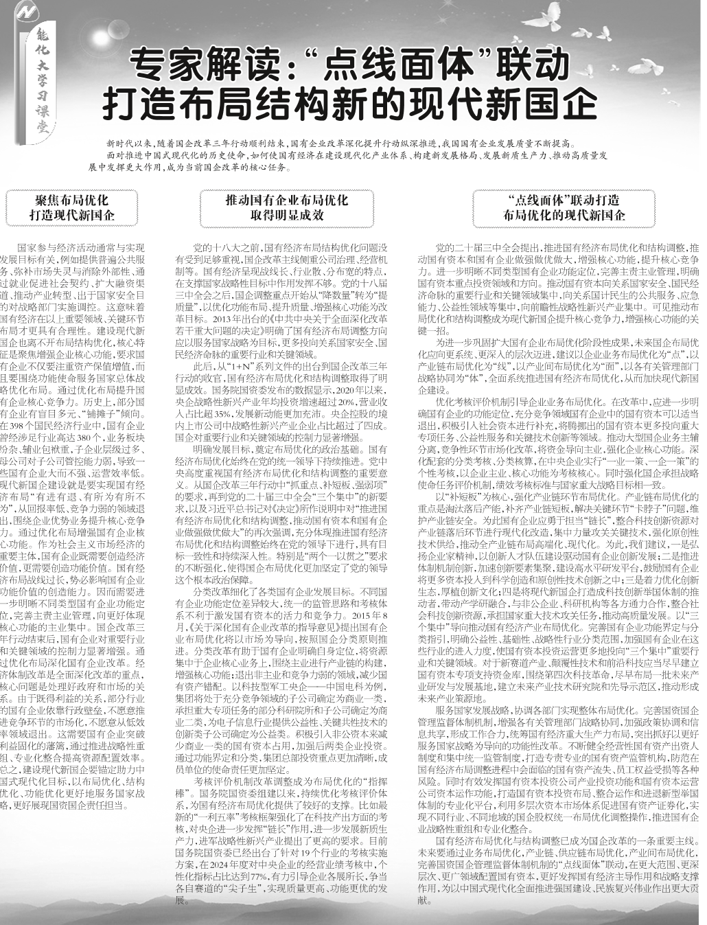 專家解讀:“點線面體”聯動 打造布局結構新的現代新國企