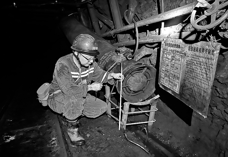 圖為池承杰在工作面檢查局部通風機 他盡心竭力做好通風安全工作,全力保證礦井供風系統的完好可靠,確保井下所有工作面的新鮮風流充足,用心把好礦井安全管理的第一道門。他就是永安煤業公司蘇橋煤礦安監站副站長池承杰。