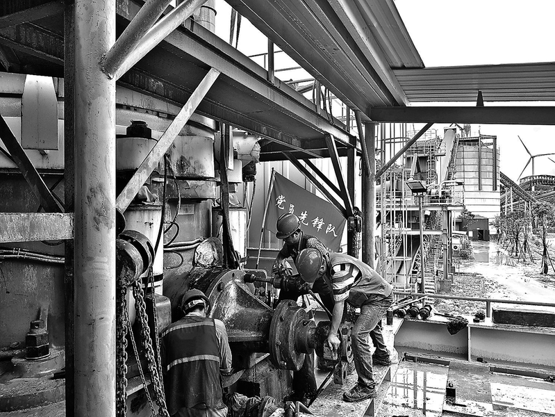 近日,福能新材權屬漳州公司礦山中碎車間1#圓錐破碎機突發故障。公司上下聞令而動,支部黨員先鋒隊第一時間趕赴現場展開緊急搶修,歷時10余小時的連續奮戰,順利完成了搶修復產工作。 (王志山 攝)