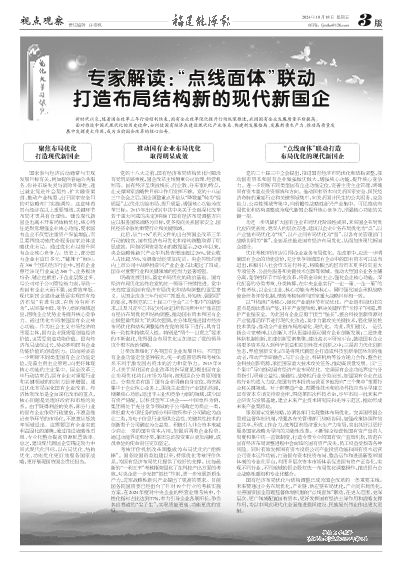 專家解讀:“點線面體”聯動 打造布局結構新的現代新國企
