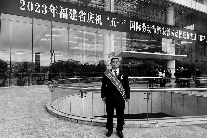 圖為盧瑋彬獲2023年度勞模現(xiàn)場(chǎng)