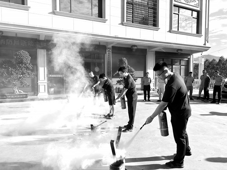11月4日,新材華安公司舉行了『消防宣傳月』啟動儀式。圖為滅火器實操演練。 (姚華強攝)