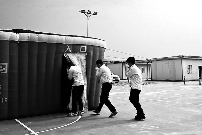 11月5日,東橋熱電公司舉行2024年“消防宣傳月”啟動(dòng)儀式。圖為逃生屋體驗(yàn)教學(xué)環(huán)節(jié)。