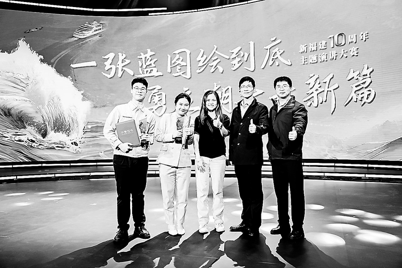 近日,由福建省委宣傳部、省委教育工委、省國資委、省總工會、團省委、省婦聯(lián)聯(lián)合主辦“的一張藍圖繪到底 勇 立 潮 頭 開 新篇”——新福建10周年主題演講大賽在福建省廣播影視集團演播廳落下帷幕。福能海峽公司員工高偉民(左一)喜獲三等獎。(張苗苗 攝)