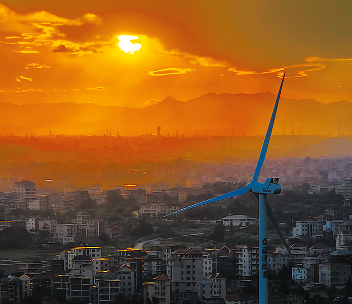 “大風(fēng)車”在夕陽(yáng)余暉下的浪漫 林劍輝攝