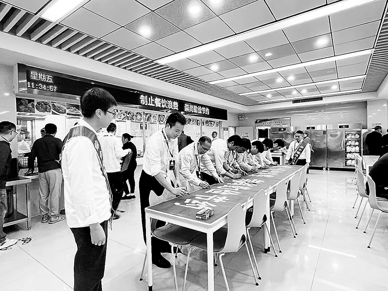 近日,龍安熱電公司綜合管理黨支部在公司員工食堂組織開展“制止餐飲浪費崇尚勤儉節約”主題黨日活動承諾簽字儀式,向全體員工發出倡議,號召大家行動起來,節約糧食,反對舌尖上的浪費。 (蘇明照 攝)
