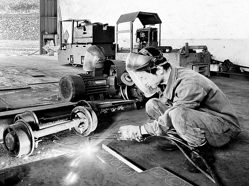 在維修礦車。 (潘金鵬攝)