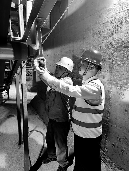 圖為詹建洲(右)在磨房檢查馬槽信號(hào)傳送器 “下來(lái),快下來(lái),安全帶系好再干活!”“那個(gè)安全帽系歪了的,抓緊撤出來(lái)!”“動(dòng)火作業(yè)票拿出來(lái)給我看看!”他獨(dú)特的“大嗓門(mén)”總能給工友們留下深刻的印象,雖然大家嘴上說(shuō)著“真煩人”,但在內(nèi)心還是感覺(jué)萬(wàn)分踏實(shí)。他就是新材公司權(quán)屬泉州公司的安全管理員、出了名的“大嗓門(mén)”——詹建洲。