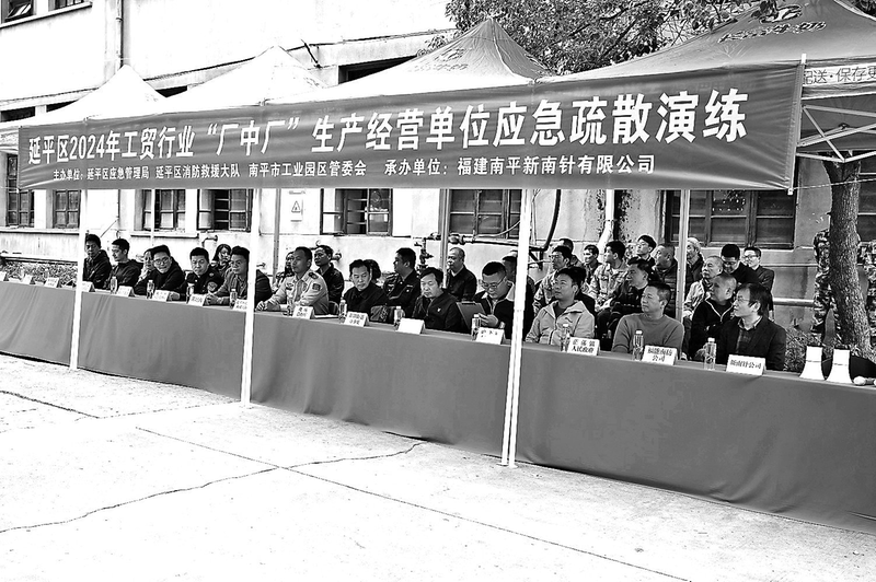 近日,南平市延平區(qū)應(yīng)急管理局、延平區(qū)消防救援大隊以及南平市工業(yè)園區(qū)管委會在福能南紡公司子公司新南針公司聯(lián)合開展2024年工貿(mào)行業(yè)“廠中廠”生產(chǎn)經(jīng)營單位應(yīng)急疏散演練,全力筑牢企業(yè)安全“防火墻”。 (鄢仁杉 張琳 攝)