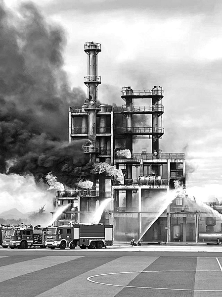 全國“消防宣傳月”期間,海泉化學公司以“全民消防、生命至上”為主題開展了一系列活動。圖為該公司消防隊和古雷岱仔消防隊在公司乙烯球罐開展消防聯(lián)合演練。 (魏林韜 闕曉梅 攝)