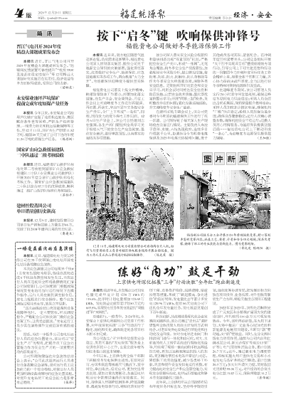 在迎峰度冬期間,該公司管理人員實行24小時堅守崗位值班制,確保迎峰度冬期間電力供應穩(wěn)定;采購人員全面出擊聯(lián)系煤源,保質(zhì)保量提升燃料庫存;采樣人員加班加點接卸電煤,確保機組“口糧”供應穩(wěn)定;檢修人員加強設備治理,確保設備健康穩(wěn)定;運行人員精心調(diào)整參數(shù),確保機組安全平穩(wěn)運行;后勤人員用心用情服務,為能源保供提供堅強后盾……福能貴電公司上下聯(lián)動形成“一條心”,為迎峰度冬能源保供提供強力保障。 (王加勝)