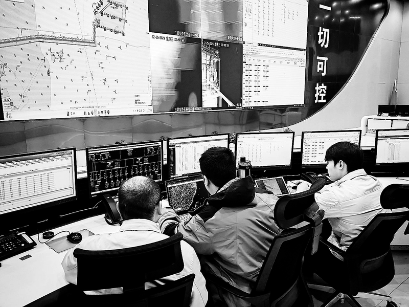 ① 1月1日,福能海峽公司智慧海電中心內(nèi),值班員緊盯著電氣盤上的數(shù)據(jù)波動(dòng),分析設(shè)備運(yùn)行參數(shù),根據(jù)系統(tǒng)需要實(shí)時(shí)調(diào)整設(shè)備,確保設(shè)備在最佳的運(yùn)行工況下工作,保障電力供應(yīng)的穩(wěn)定與安全。