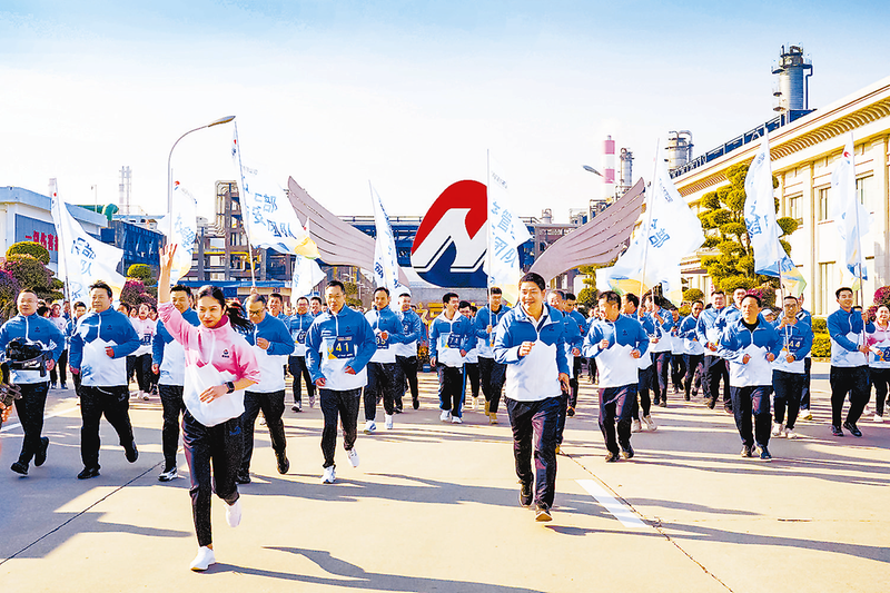 1月3日,來自福海創(chuàng)公司、福建中沙、古蕾化 學(xué)的200多名運(yùn)動健兒歡 聚一堂,以健康奔跑的方式迎接新一年 的到來。(福海創(chuàng) 攝)