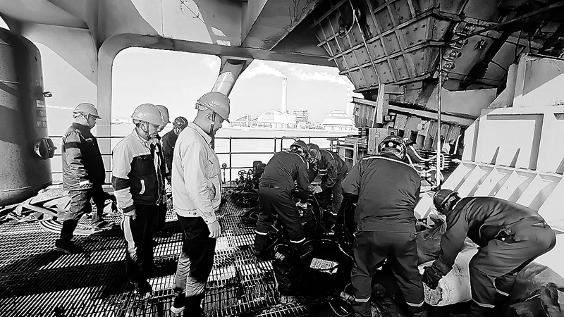 新年伊始,福建煤電公司泉州分公司根據(jù)碼頭接卸任務(wù)安排,組織維檢人員對3臺卸船機進行有序維檢修,以確保碼頭卸船機在新的一年能正常運行。圖為維修人員正在檢修2號卸船機卸煤艙。