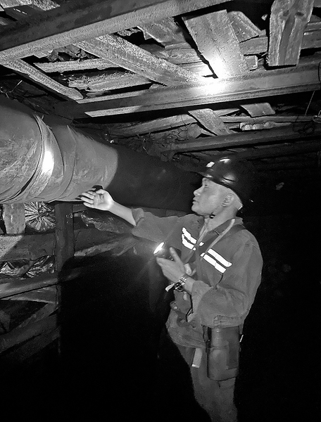 圖為康文言在掘進(jìn)工作面檢查風(fēng)筒漏風(fēng)情況 他長(zhǎng)期從事安全生產(chǎn)一線工作,有著豐富的基層管理經(jīng)驗(yàn),深諳井下生產(chǎn)各環(huán)節(jié)中的流程、工序。自擔(dān)任安監(jiān)站站長(zhǎng)以來,他敢抓敢管,敢于“炮轟”各類違章現(xiàn)象,人送外號(hào)“康大炮”。他就是永安煤業(yè)公司蘇橋煤礦安監(jiān)站站長(zhǎng)康文言。