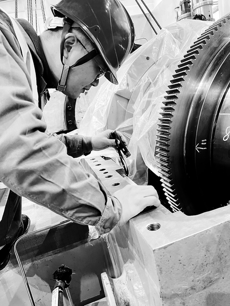 近日,龍安熱電公司開展年度檢修工作,對公司設備進行綜合檢驗,以“嚴細實新”推進設備管理與人員素質雙提升。圖為汽輪機進出油管道封堵檢查。 (涂瑞興 攝)