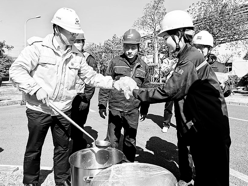 近日,鴻山熱電公司開展“檢修現場送溫暖”活動,用實際行動傳遞關懷,將貼心服務送到一線員工身邊。 (林秀淼 攝)