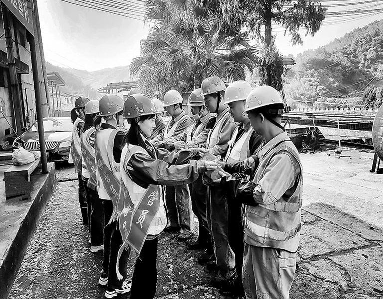 為了讓全員做到“人到崗、心在崗、狀態在崗、責任在崗”,2月14日,永安煤業公司西洋篩選廠組織協管員開展送溫暖、囑安全活動,為返崗職工送去寓意平安的平安蛋和安全囑托。(黃麗晶 攝)