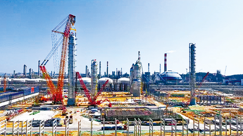 五臺超限塔器的安裝是乙烯裝置的關(guān)鍵路徑之一,包括乙烯塔、汽油分餾塔、急冷水塔和2臺丙烯塔,其吊裝作業(yè)是項目建設(shè)的重中之重。 (漳州古雷開發(fā)區(qū)新聞中心供圖)